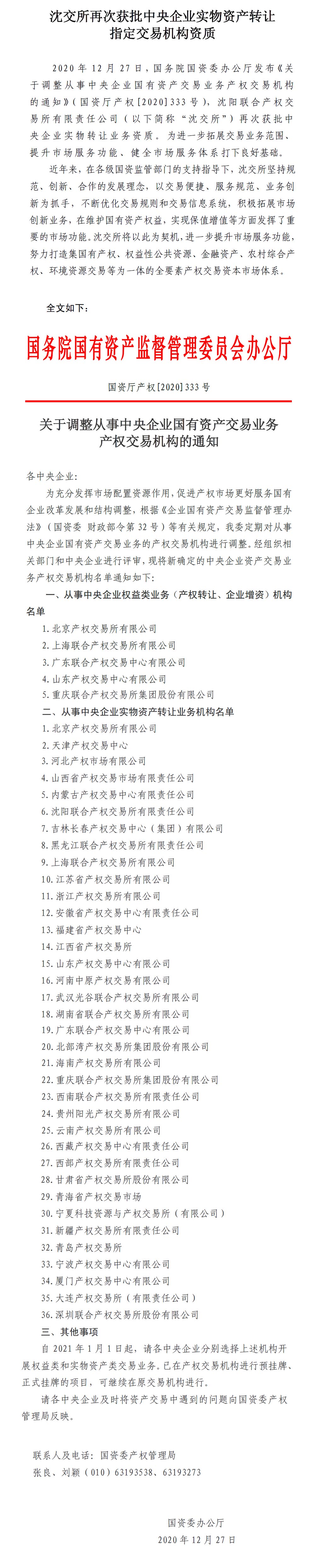 沈交所再次獲批中央企業(yè)實物資產(chǎn)轉(zhuǎn)讓指定交易機構(gòu)資質(zhì)