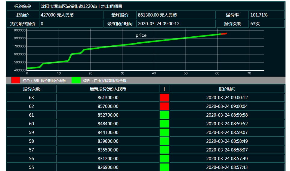 今天上午,隨著競(jìng)價(jià)系統(tǒng)“跳動(dòng)”的紅色秒數(shù)倒計(jì)時(shí)的結(jié)束,沈陽(yáng)市渾南區(qū)第一單政府管理土地流轉(zhuǎn)項(xiàng)目,取得圓滿成功。經(jīng)此次面向社會(huì)公開(kāi)流轉(zhuǎn),通過(guò)網(wǎng)絡(luò)公開(kāi)競(jìng)價(jià),1宗土地競(jìng)價(jià)增值率達(dá)101.71%。隨后,另1宗土地以53.73 %的競(jìng)價(jià)增值率成交。