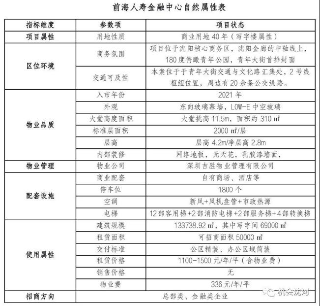 項目簡介:前海人壽金融中心是前海人壽不動產管理平臺進駐東北區(qū)域的首個商務標桿作品。項目建筑規(guī)模13萬余平方米,其中寫字間近7萬平方米,目前可招商面積5萬平方米,租賃價格1100-1500元/年/平(含物業(yè)費)。