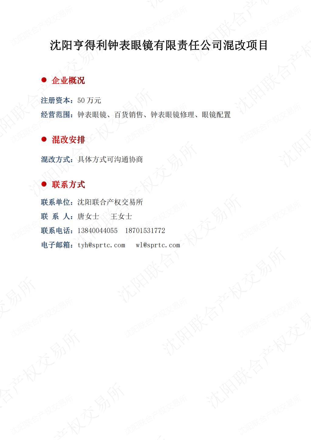16.沈陽亨得利鐘表眼鏡有限責任公司混改項目