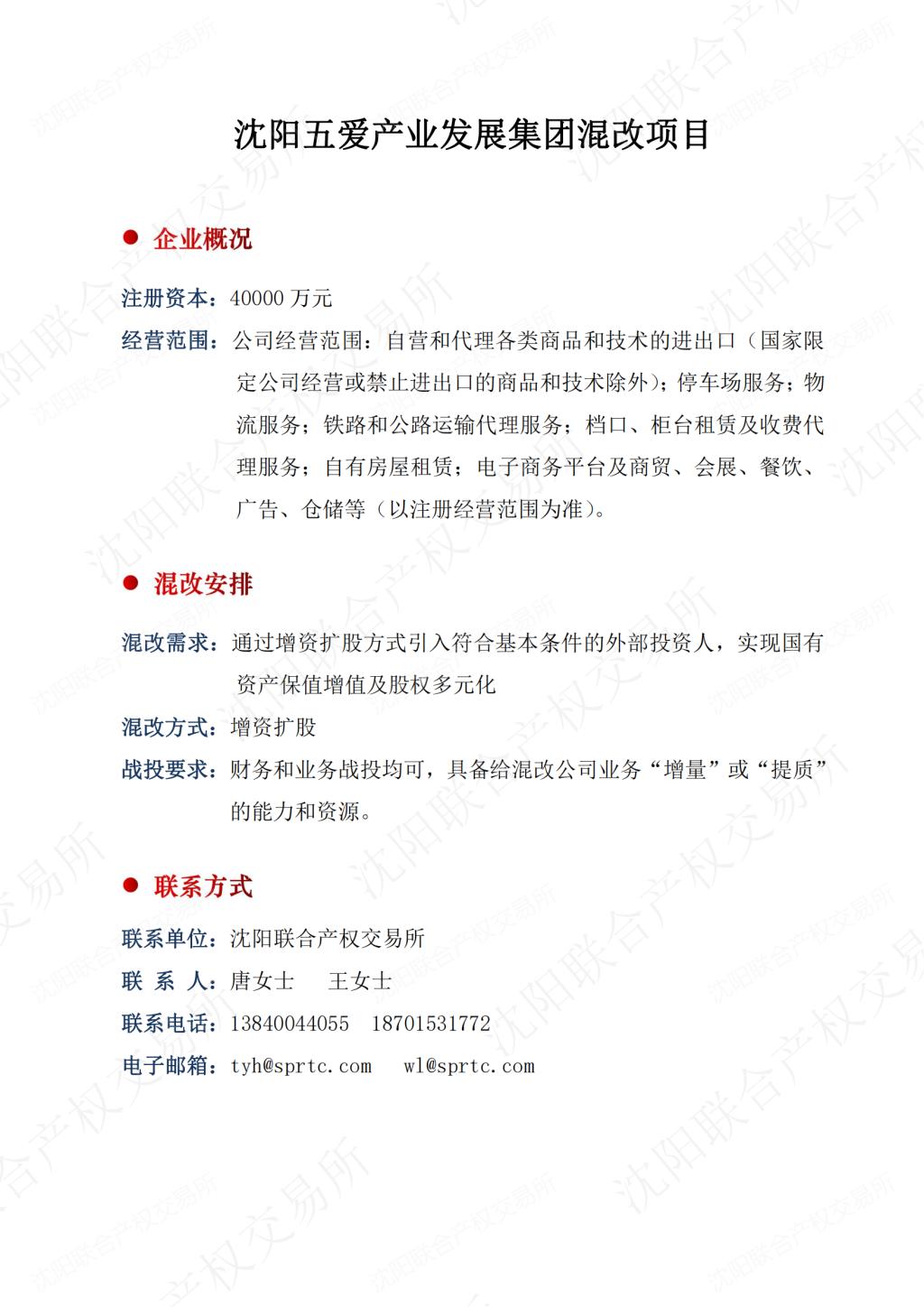 17.沈陽(yáng)五愛產(chǎn)業(yè)發(fā)展集團(tuán)混改項(xiàng)目