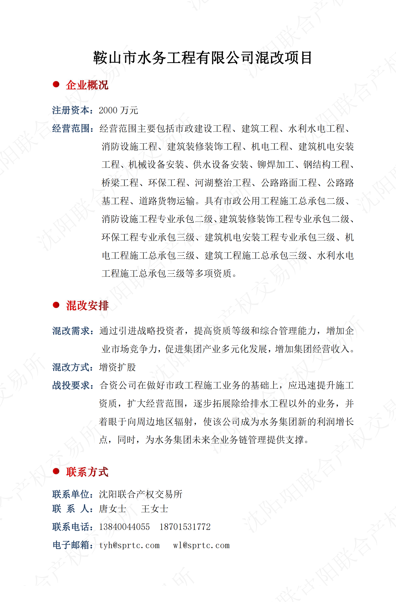35.鞍山市水務(wù)工程有限公司混改項(xiàng)目
