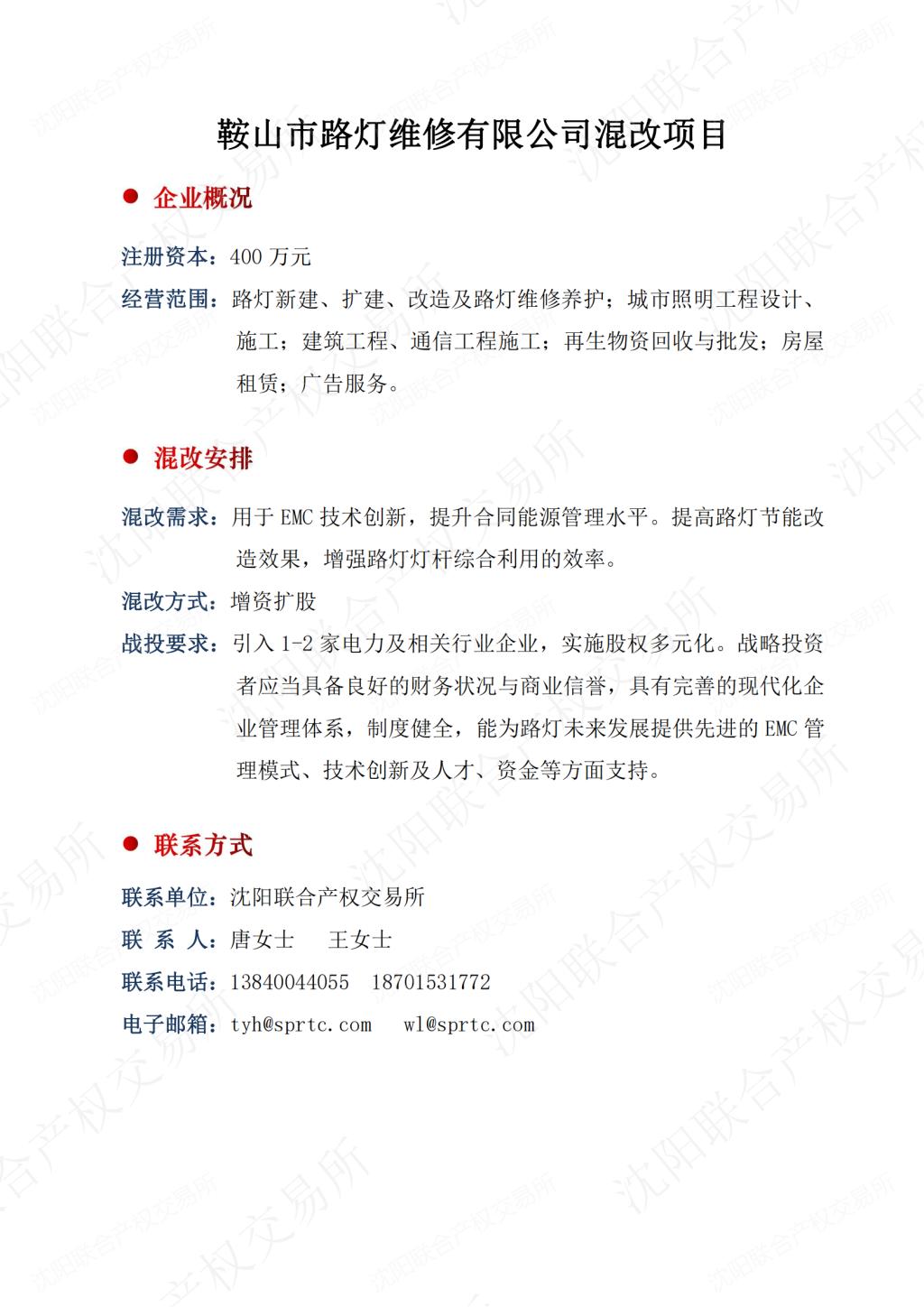 49.鞍山市路燈維修有限公司混改項(xiàng)目