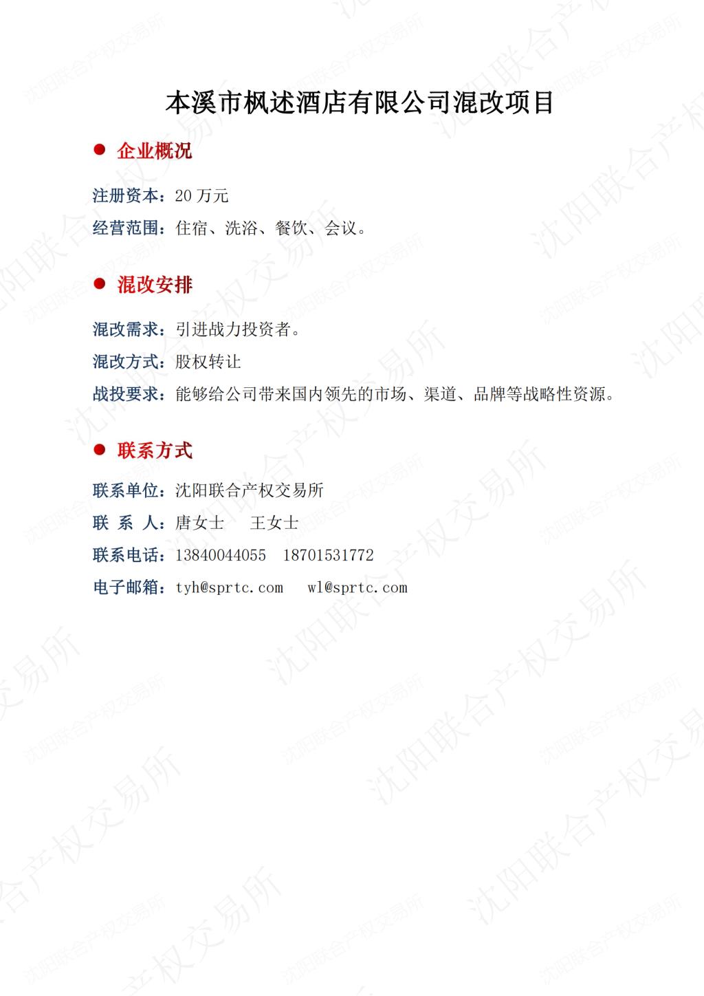 58.本溪市楓述酒店有限公司混改項目