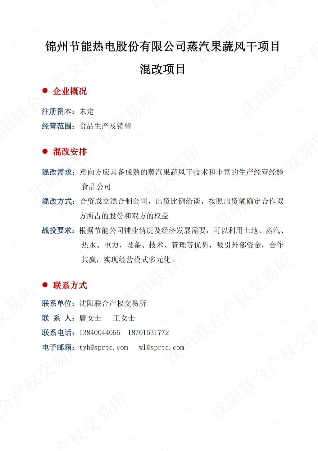 71.錦州節(jié)能熱電股份有限公司蒸汽果蔬風(fēng)干項(xiàng)目混改項(xiàng)目
