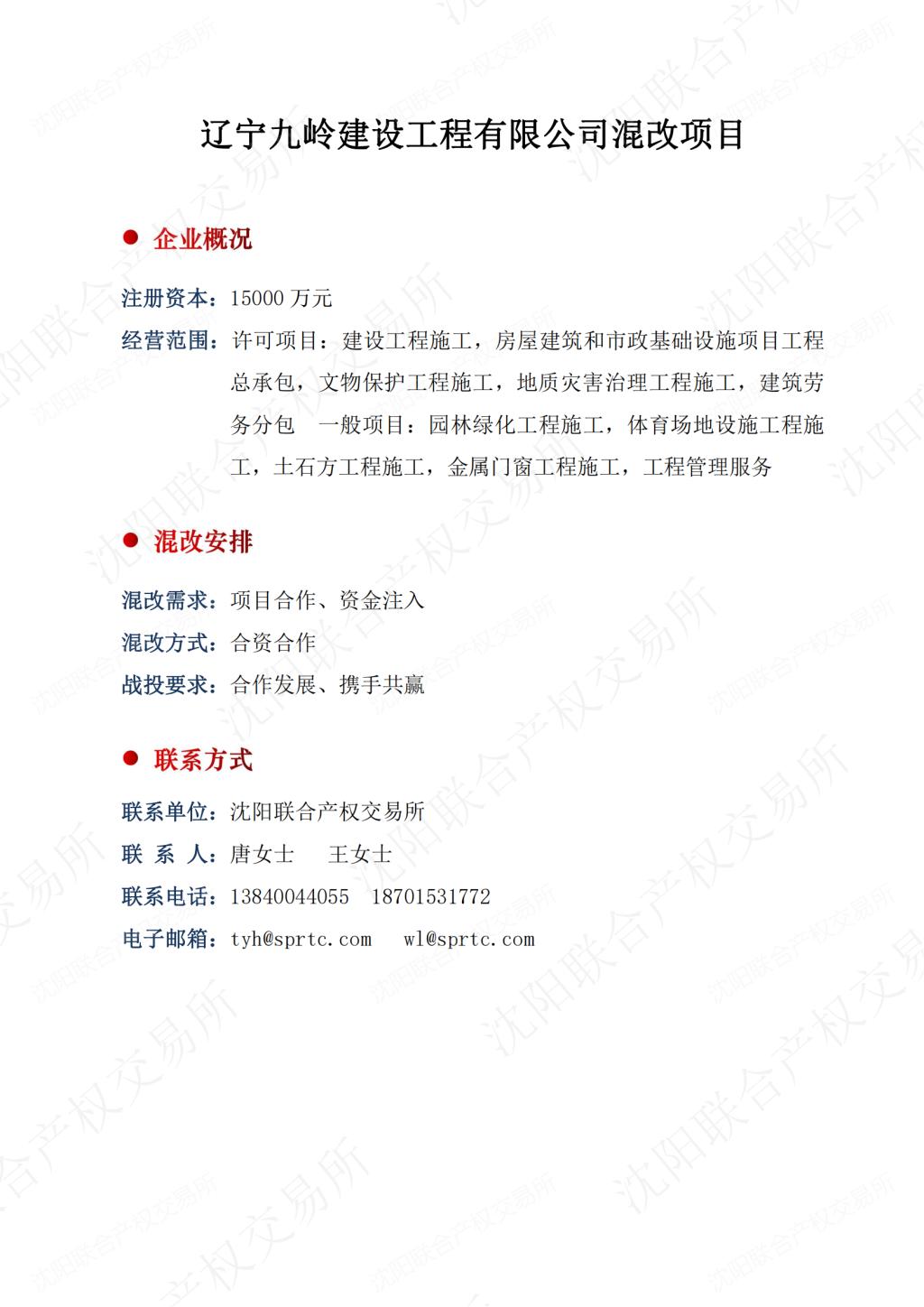 84.遼寧九嶺建設(shè)工程有限公司混改項目
