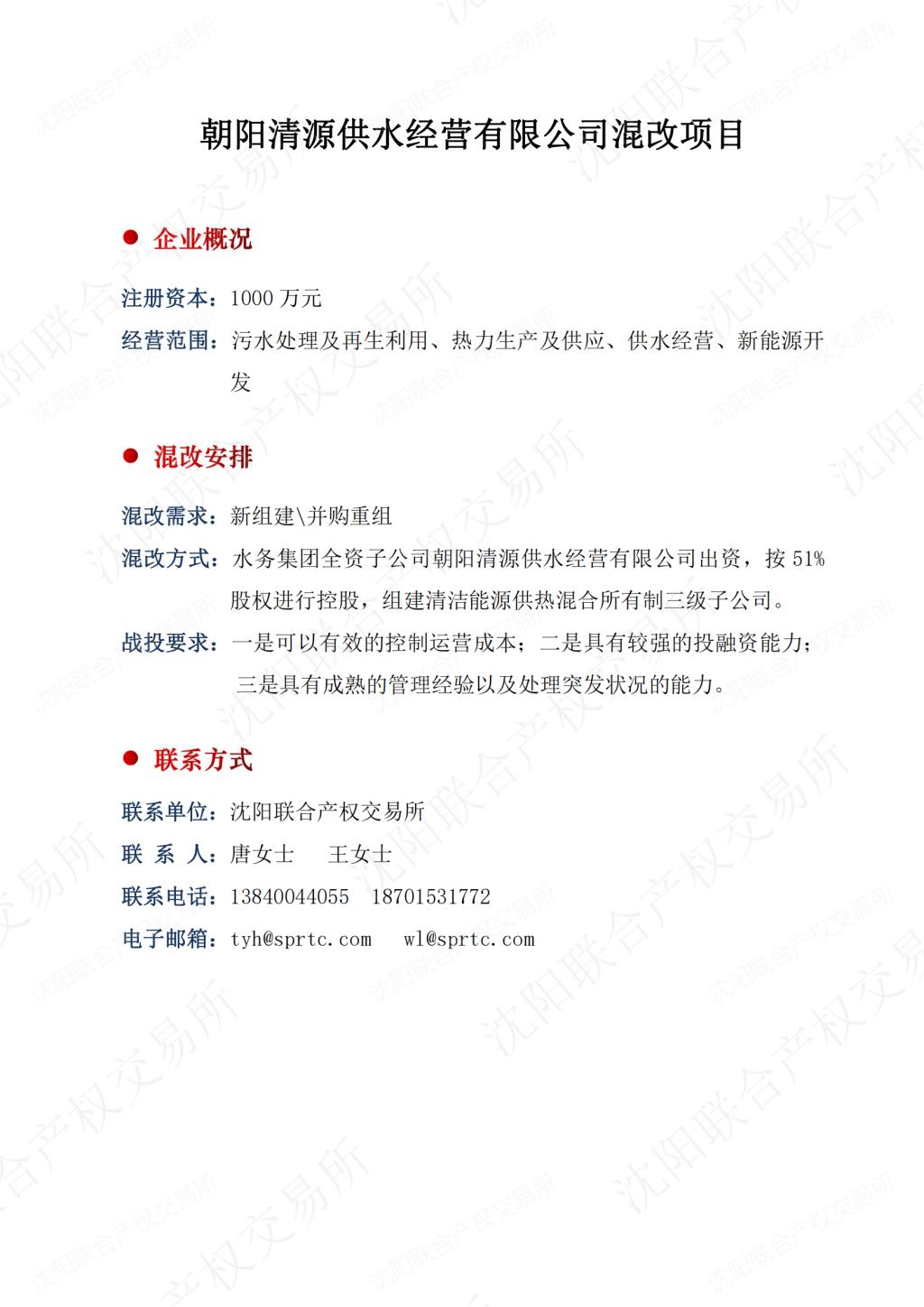 86.朝陽清源供水經(jīng)營有限公司混改項目