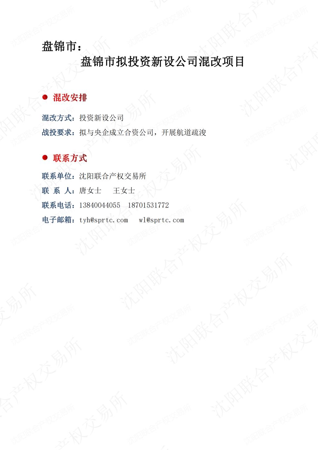 88.盤錦市擬投資新設(shè)公司混改項(xiàng)目
