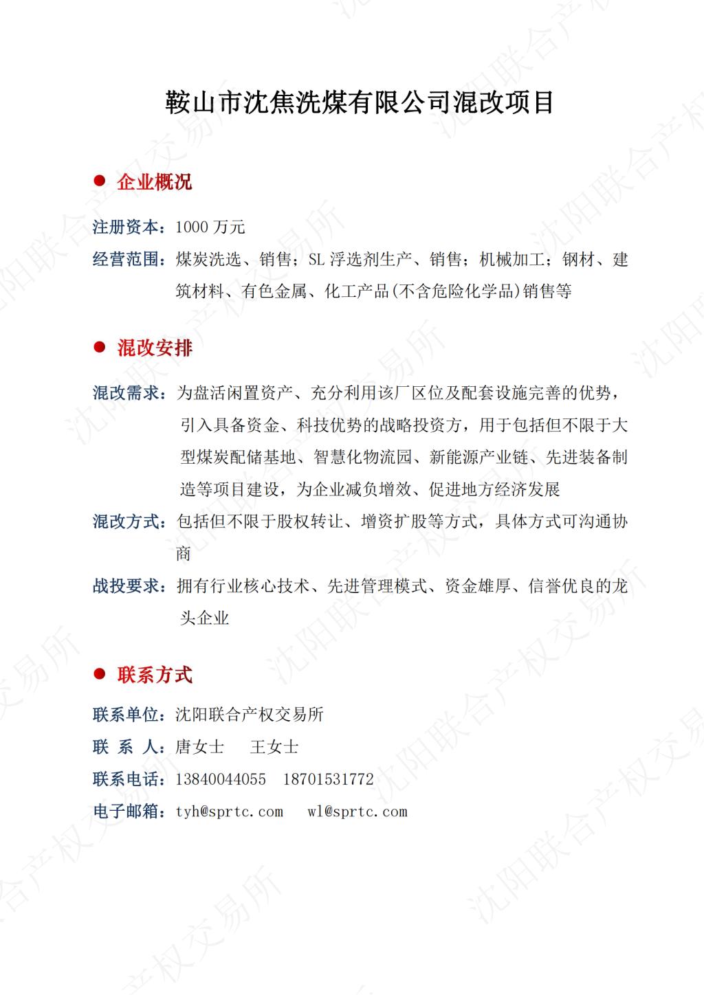 002.鞍山市沈焦洗煤有限公司混改項(xiàng)目