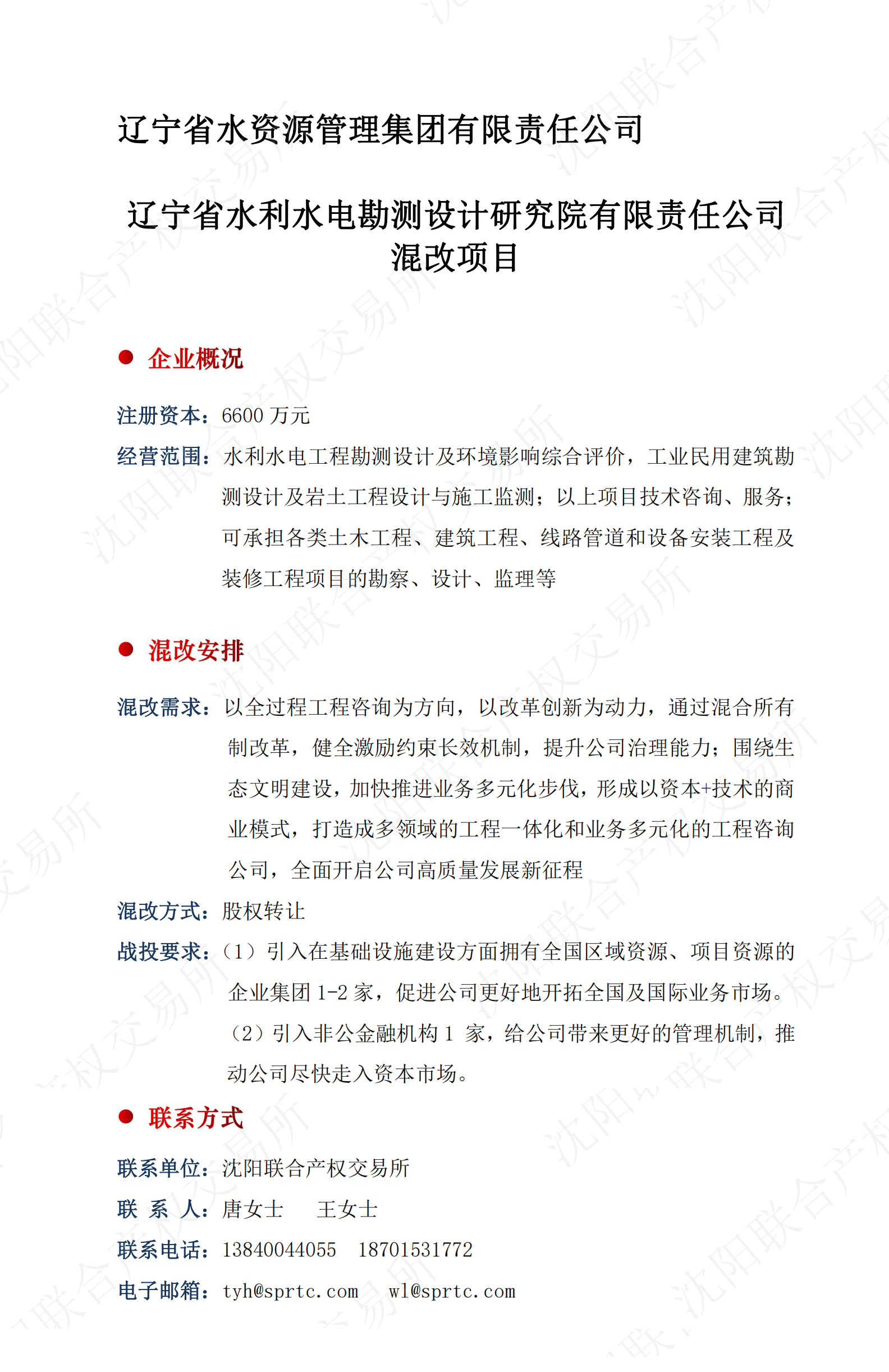 005.遼寧省水利水電勘測設(shè)計(jì)研究院有限責(zé)任公司混改項(xiàng)目