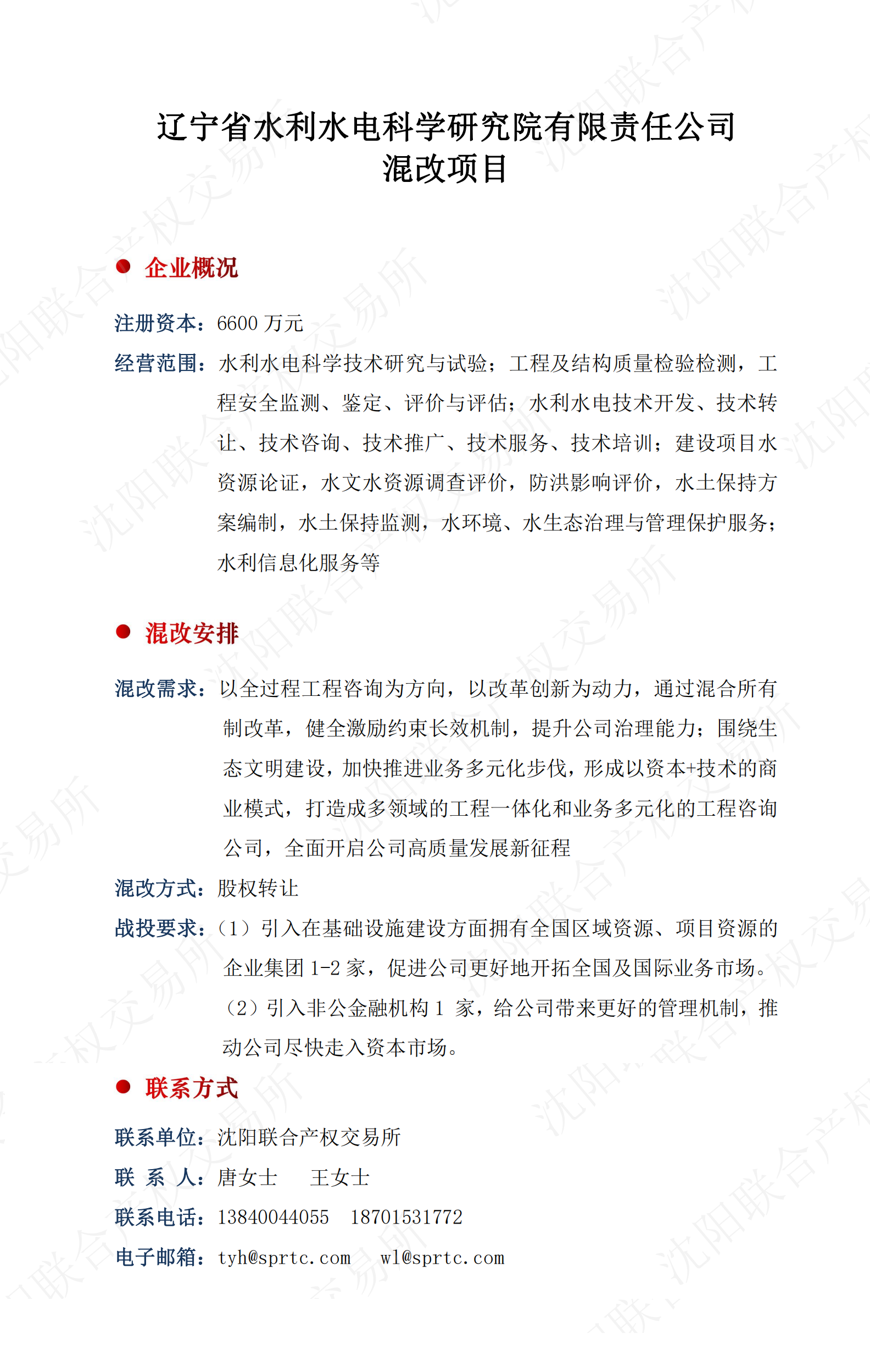 006.遼寧省水利水電科學(xué)研究院有限責(zé)任公司混改項(xiàng)目