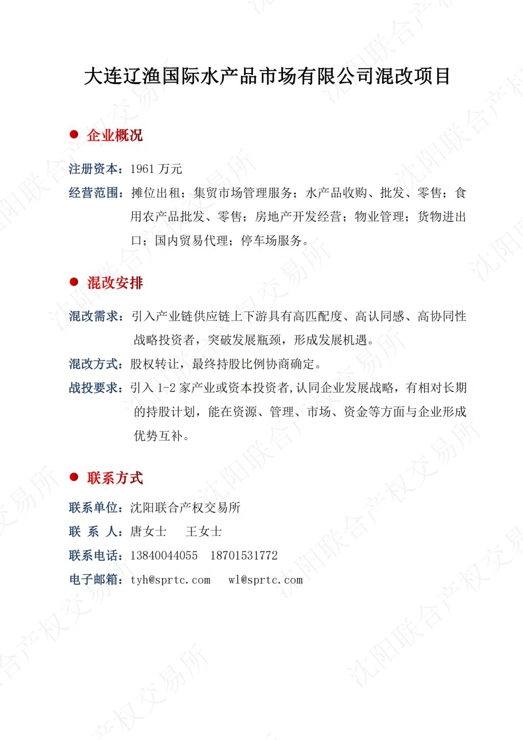 008.大連遼漁國際水產(chǎn)品市場有限公司混改項(xiàng)目