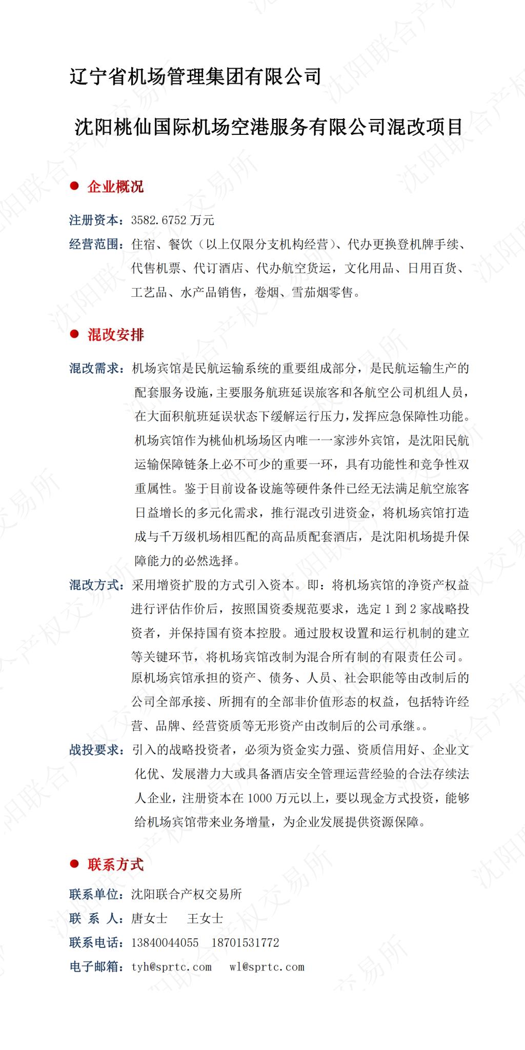 011.沈陽桃仙國際機場空港服務有限公司混改項目