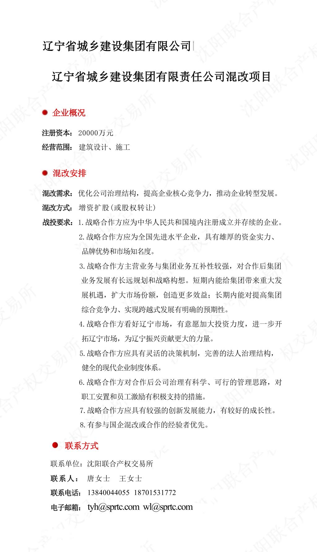 012.遼寧省城鄉(xiāng)建設(shè)集團(tuán)有限責(zé)任公司混改項(xiàng)目