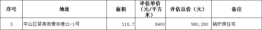 位于大連市中山區(qū)葵英街愛華巷21-1號兩處房產(chǎn),于上個世紀70年代建成。一處房屋為簡易房,磚木結構共1間房,總建筑面積116.7㎡,用途為住宅,權證號:(中股份)2011200922號;另一處房屋原為望海巷14-16號住宅樓配套用的鍋爐房,因住宅樓采用集中供暖方式鍋爐房的供暖功能已廢棄,房屋建筑面積約97㎡,無房證。