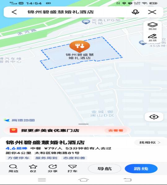 資產(chǎn)位于錦州市太和區(qū)錦南路81號,房產(chǎn)為鋼結構建筑,層數(shù)為一層。有2個大宴會廳、2個小宴會廳、10個婚宴包房,門前有較多停車位。 |
