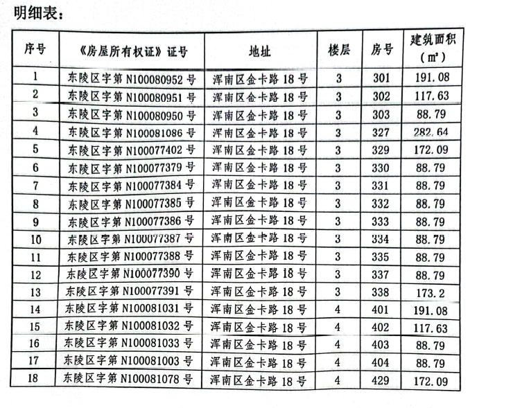 資產(chǎn)地址:沈陽市渾南區(qū)金卡路18號(hào)47處