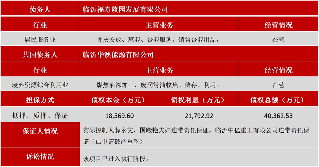 債務(wù)人臨沂福壽陵園發(fā)展有限公司100%股權(quán)質(zhì)押(14,470萬(wàn)元)(經(jīng)營(yíng)權(quán)人)