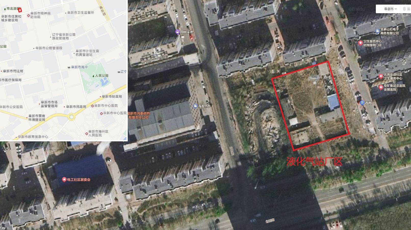 本場地有土地證,原為液化汽站,地上有零星附著物,已閑置不用。場地處于待租狀態(tài),場地東側(cè)、北側(cè)、西側(cè)均為住宅小區(qū),南側(cè)臨市區(qū)主干道。場地東側(cè)還有阜礦集團(tuán)總醫(yī)院安居醫(yī)院暨社區(qū)衛(wèi)生服務(wù)中心。