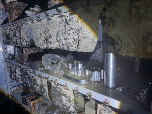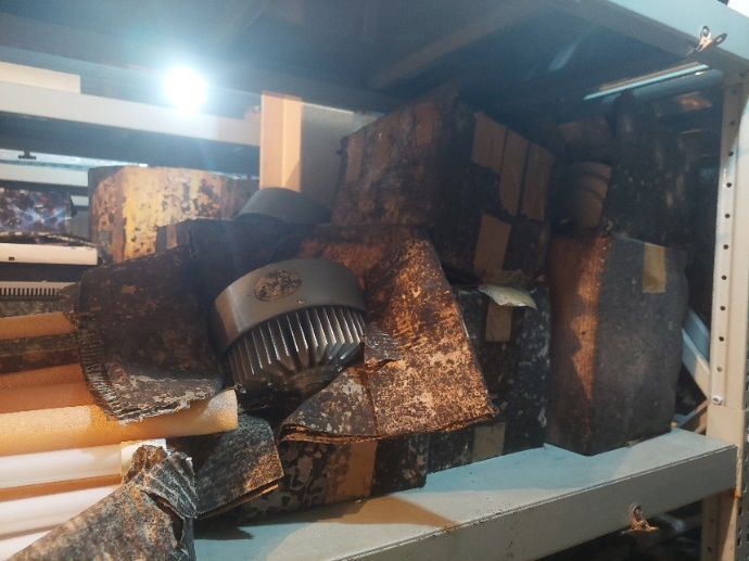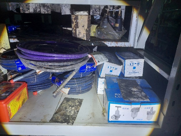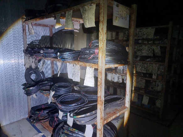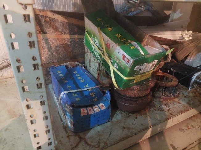 涂裝用材料主要包括隨車用的膠皮堵件、閣瑞斯頂蓋裝飾條、華頌窗框黑膜、各型號過濾材料、老舊工具及各類舊雜物等;設(shè)備備件電氣類、機(jī)械類、水泵閥門類、機(jī)器人專用、輸調(diào)漆專用、冷凍機(jī)專用、高壓水槍專用、皮帶等各類設(shè)備所用備件。由于庫房夏季漏雨,環(huán)境潮濕,部分設(shè)備備件外包裝發(fā)霉長毛嚴(yán)重,外觀較差,但內(nèi)部均為未使用新件。