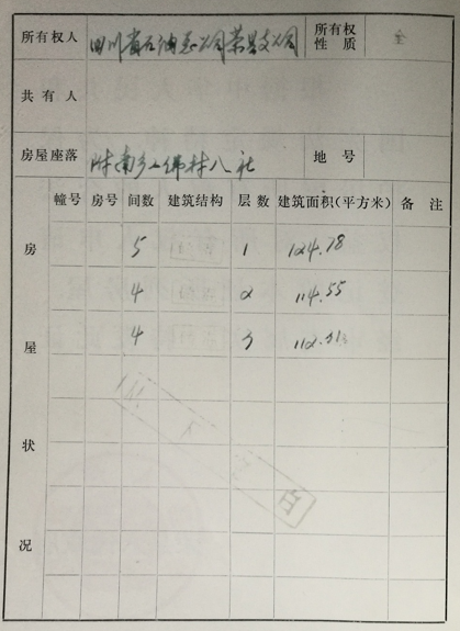 房產(chǎn)證編號為“榮權(quán)(全)字第0007526號”、“榮權(quán)(全)字第0007527號”、“榮權(quán)(全)字第0007528號”、“榮權(quán)(全)字第0007541號”,證載權(quán)利人為“四川省石油總公司榮縣支公司”,建筑面積分別為351.64㎡、72.8㎡、215.9㎡、136.78㎡,磚混結(jié)構(gòu),原房產(chǎn)用途為“辦公樓”,現(xiàn)以上房產(chǎn)均已拆除,產(chǎn)權(quán)證未注銷,目前地面房產(chǎn)均為原承租戶修建,未辦理產(chǎn)權(quán)證。