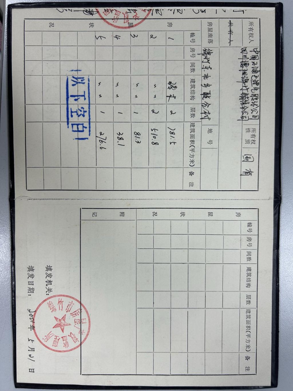 房產(chǎn)證編號(hào)“字第0066號(hào)”,證載權(quán)利人為“中國(guó)石油天然氣股份有限公司四川德陽(yáng)綿竹銷售分公司”,建筑面積544.7/288/1627.5/16.8㎡。