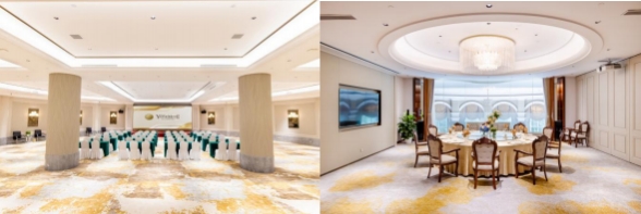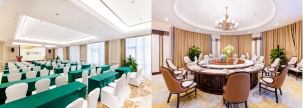 餐飲區(qū)域面積 2241 平米,包含餐飲咖啡廳 1 個(gè),普通包間義坊、信廳、禮閣、智堂4 個(gè)廳,豪華泰山包間 1 個(gè)。會(huì)議廳包含貴賓接待室 1 個(gè),湖景會(huì)議廳 1 個(gè),鬧吧多功能廳 1 個(gè)(B1 宴會(huì)廳)。