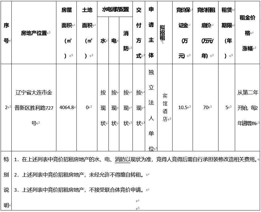2.2項目內(nèi)容:該項目位于遼寧省大連市金普新區(qū)勝利路727號,房屋面積4064.8㎡,土地面積0㎡,共計1棟房屋,地上7層,無地下室,該項目無房產(chǎn)證。