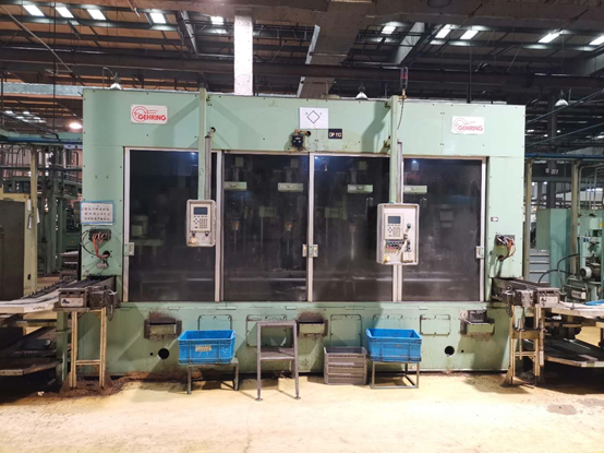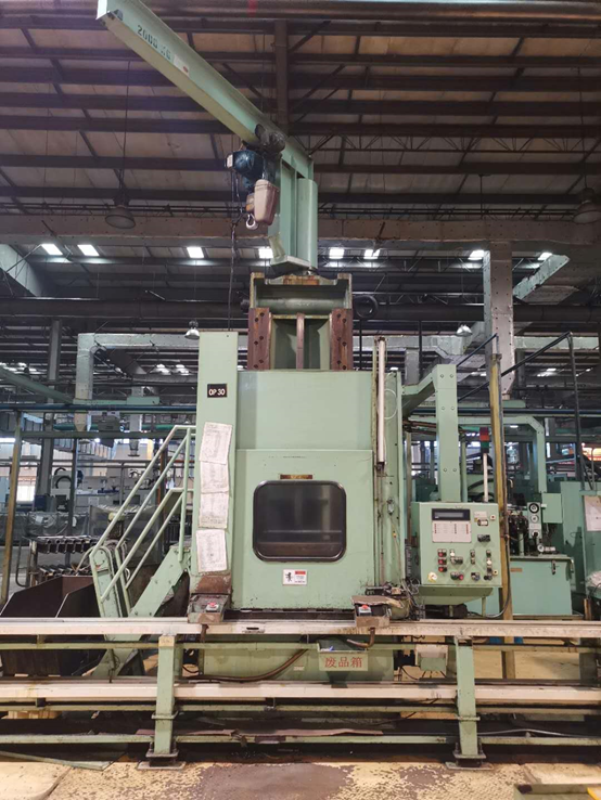 生產(chǎn)線整線設(shè)備在1998年由日本進(jìn)口,生產(chǎn)節(jié)拍90s,設(shè)計(jì)產(chǎn)能15萬(wàn)件/年。生產(chǎn)線轉(zhuǎn)讓設(shè)備主要是缸蓋的精加工設(shè)備,包括配備導(dǎo)管座圈加工專用機(jī)床等專機(jī)、清洗機(jī)、精銑上下面專機(jī)、輸送系統(tǒng)等,保證產(chǎn)品的質(zhì)量和高效率穩(wěn)定的生產(chǎn)。詳細(xì)見下表及圖片