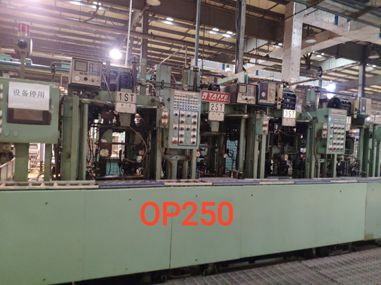 生產(chǎn)線整線設(shè)備在1998年由德國(guó)進(jìn)口,生產(chǎn)節(jié)拍22.5s,設(shè)計(jì)產(chǎn)能60萬(wàn)件/年。生產(chǎn)線轉(zhuǎn)讓設(shè)備包括配備先進(jìn)的專機(jī)(4工位組合機(jī)床)、立式拉床、立式加工中心、專機(jī)(8工位組合機(jī)床)、單端面磨床、組裝機(jī)、專機(jī)(4工位組合機(jī)床)、珩磨機(jī)、清洗機(jī)、稱重分組機(jī)、輸送系統(tǒng),保證產(chǎn)品的質(zhì)量和高效率穩(wěn)定的生產(chǎn)。