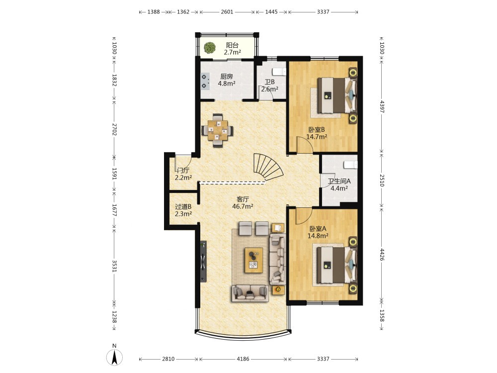 此房屋位于第3層,建筑面積136.79㎡,把東山,南北朝向,兩室兩廳兩衛(wèi)結(jié)構(gòu),南北通透,標準戶型,一南一北兩個臥室,室內(nèi)老式裝修,樓前為七層住宅建筑,南側(cè)有小區(qū)內(nèi)綠化景觀,全天采光無遮擋。