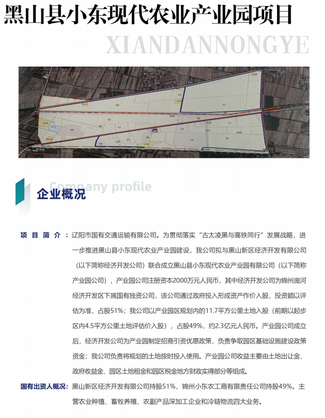 黑山縣小東現(xiàn)代農(nóng)業(yè)產(chǎn)業(yè)園有限公司