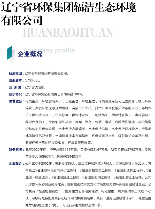 遼寧省環(huán)保集團(tuán)輻潔生態(tài)環(huán)境有限公司