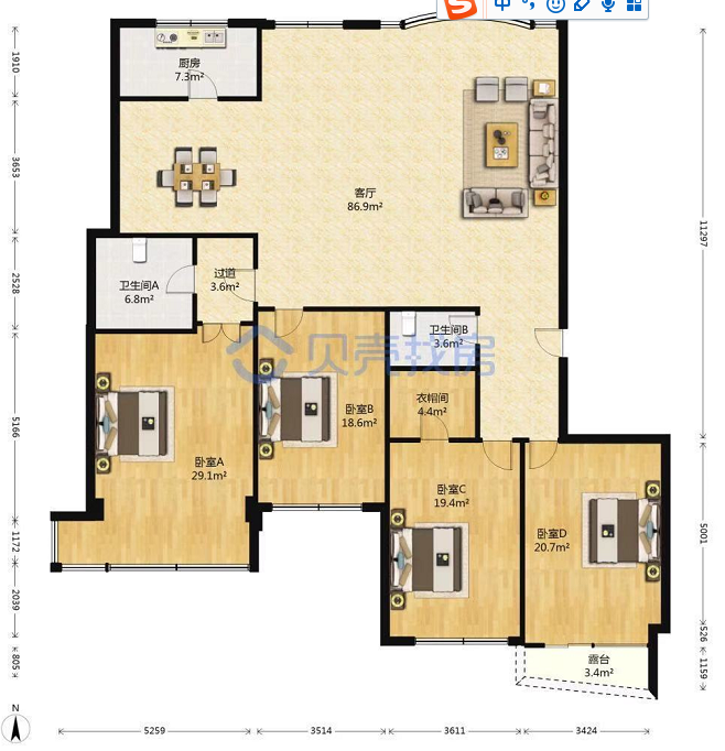面積:251.53平方米