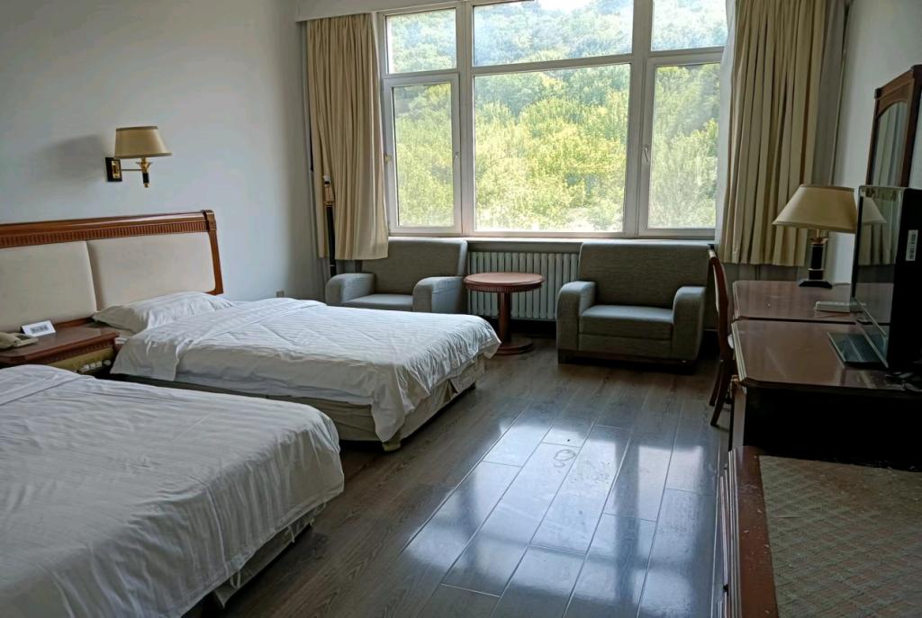 房產(chǎn)狀況:占地面積約120000平方米,建筑面積28000平方米左右,無(wú)房產(chǎn)證,共三塊土地,其中兩塊土地有土地證(一塊為旅館業(yè)商業(yè)用地面積108067.87平方米,一塊為住宅用地面積6466.41平方米。)另有一塊約7000平的土地?zé)o土地證,有土地出讓協(xié)議。酒店院內(nèi)有相鄰兩塊飛地,面積1760.06平方米不屬于我單位。酒店有客房150間,大會(huì)議室1個(gè)(可容納350人),小會(huì)議室5個(gè),培訓(xùn)教室10個(gè),可容納200人用餐宴會(huì)廳一個(gè),餐廳包房4個(gè)(10—16人),可容納100人用餐多功能廳一個(gè)。院內(nèi)后山修建甬道涼亭。