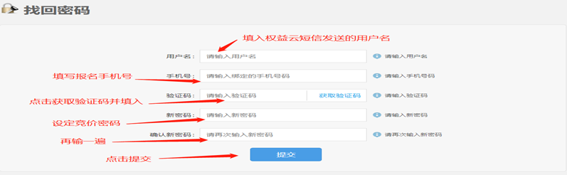 收到權(quán)益云獲得競價資格短信后登陸權(quán)益云網(wǎng)站憑短信中用戶名(格式:LN1_********** )和預(yù)留手機號設(shè)置權(quán)益云密碼,方法:如上圖所示點擊“請登錄”。