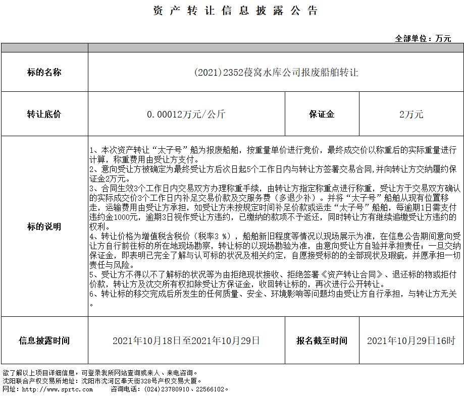 葠窩水庫(kù)報(bào)廢船舶轉(zhuǎn)讓