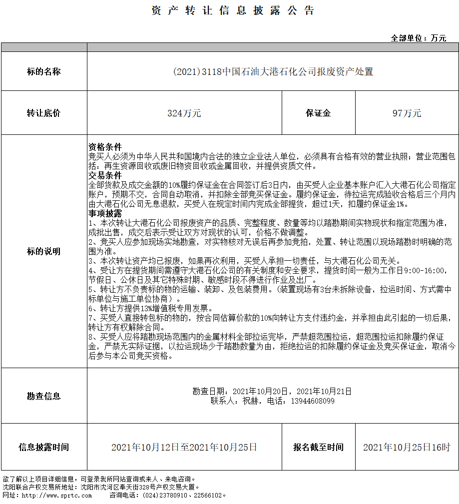 中國石油大港石化公司報(bào)廢資產(chǎn)處置