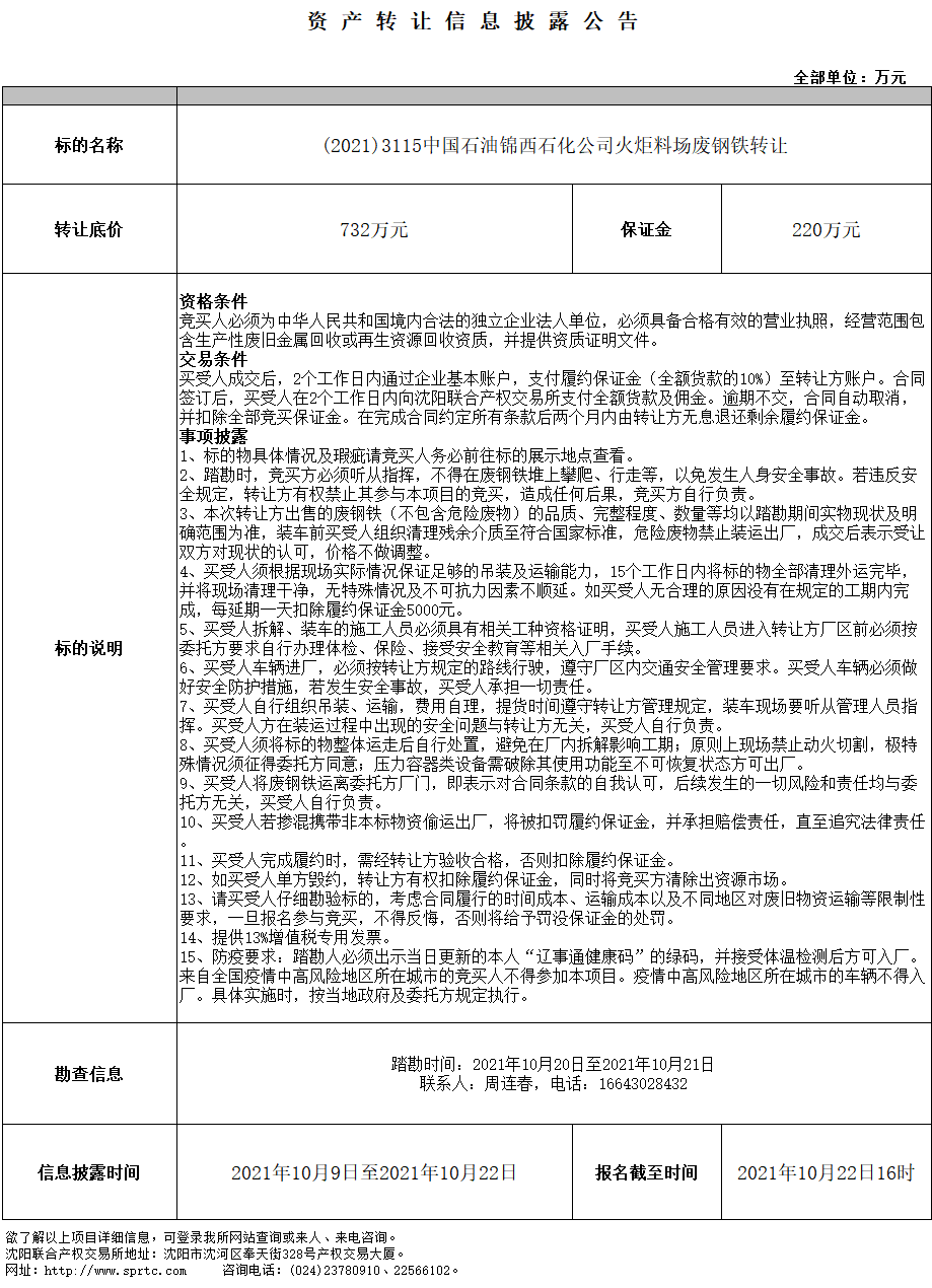 中國石油錦西石化公司火炬料場廢鋼鐵轉(zhuǎn)讓