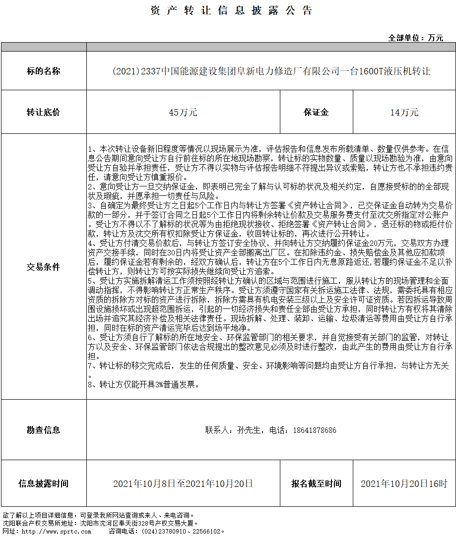 中國(guó)能源建設(shè)集團(tuán)阜新電力修造廠有限公司一臺(tái)1600T液壓機(jī) 轉(zhuǎn)讓