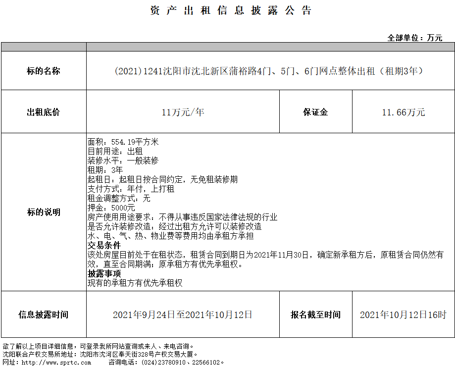 沈陽市沈北新區(qū)蒲裕路4門、5門、6門網(wǎng)點整體出租(租期3年)