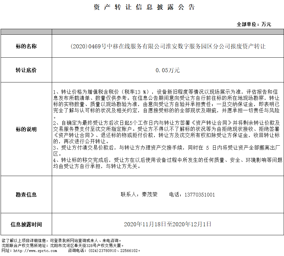 中移在線服務有限公司淮安數字服務園區(qū)分公司報廢資產轉讓