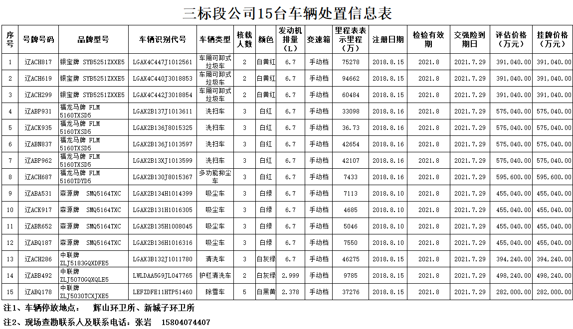 沈陽市沈北新區(qū)城市管理局亞行貸款車輛及設(shè)備轉(zhuǎn)讓(包三)