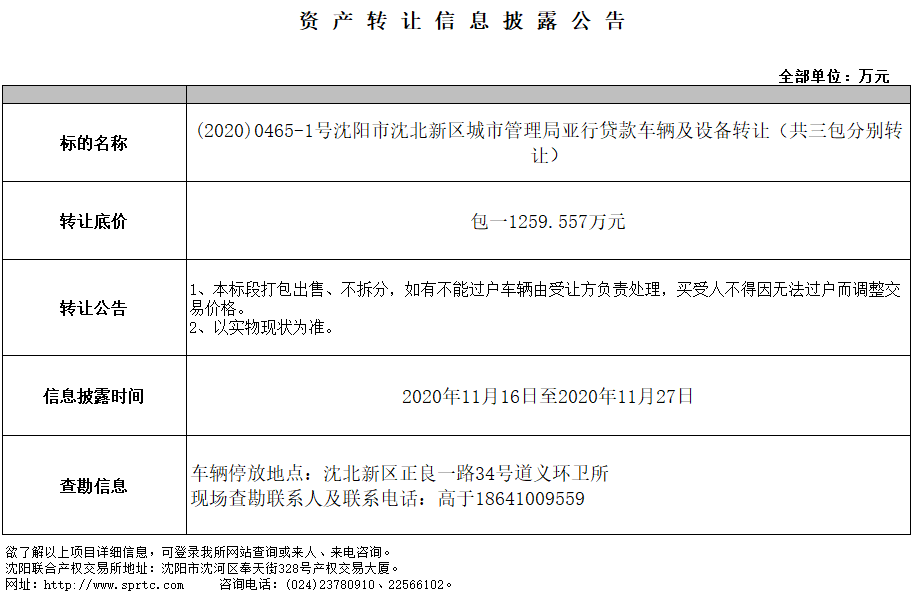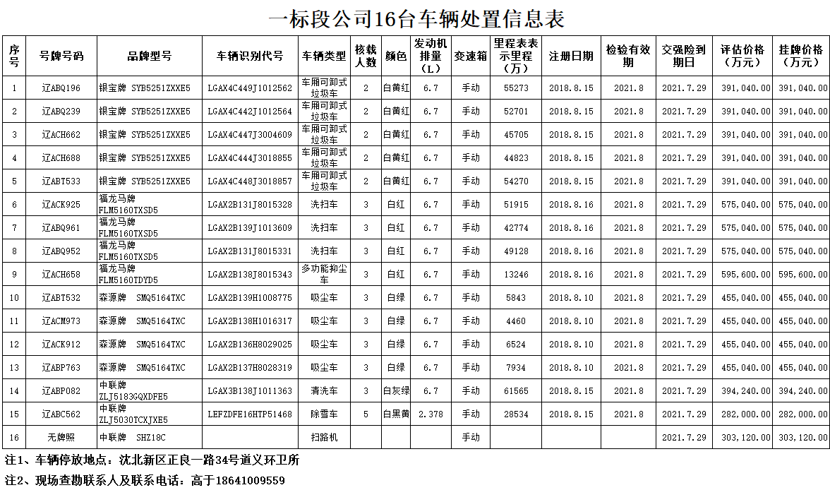 沈陽市沈北新區(qū)城市管理局亞行貸款車輛及設(shè)備轉(zhuǎn)讓(包一)