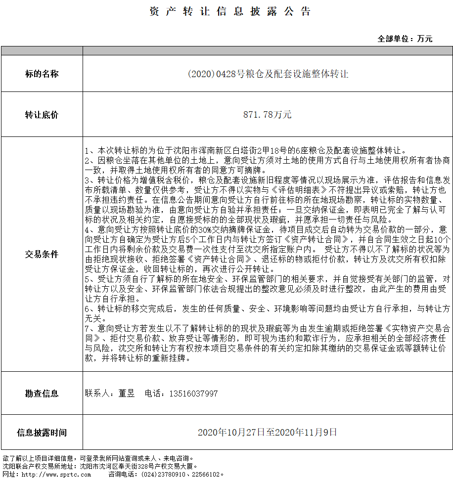 糧倉(cāng)及配套設(shè)施整體轉(zhuǎn)讓項(xiàng)目
