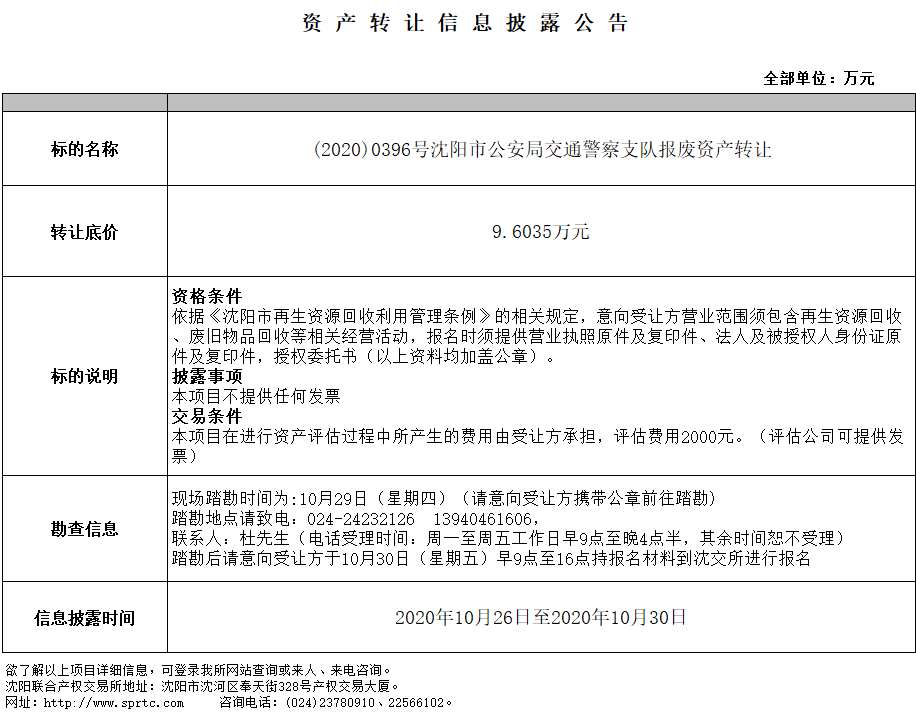 沈陽市公安局交通警察支隊報廢資產(chǎn)轉(zhuǎn)讓(包二)
