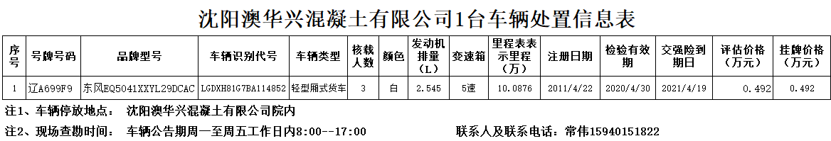 (2020)0402號(hào)沈陽(yáng)澳華興混凝土有限公司1臺(tái)車輛轉(zhuǎn)讓