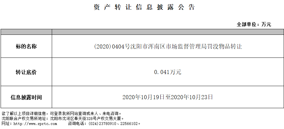 沈陽(yáng)市渾南區(qū)市場(chǎng)監(jiān)督管理局罰沒(méi)物品轉(zhuǎn)讓