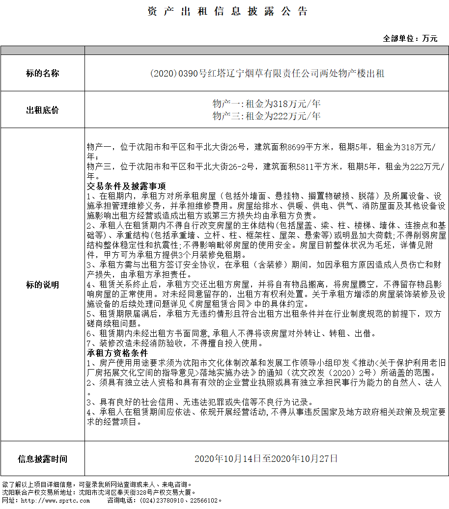 紅塔遼寧煙草公司物產(chǎn)樓3(位于和平區(qū)和平北大街26-2號(hào))房產(chǎn)出租