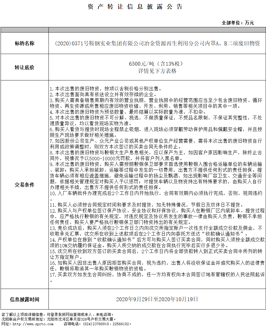鞍鋼實業(yè)集團有限公司冶金資源再生利用分公司內罩A